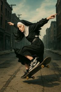 Kena näitsik võtab autosse kaks tee ääres hääletavat nunna, et sõidutada nad eemal paistva kloostrini. Nunnad on uhkest autost vaimustatud, õde Bertha küsib: „Kes teile selle uhke limusiini ostis? Kas isa või?”